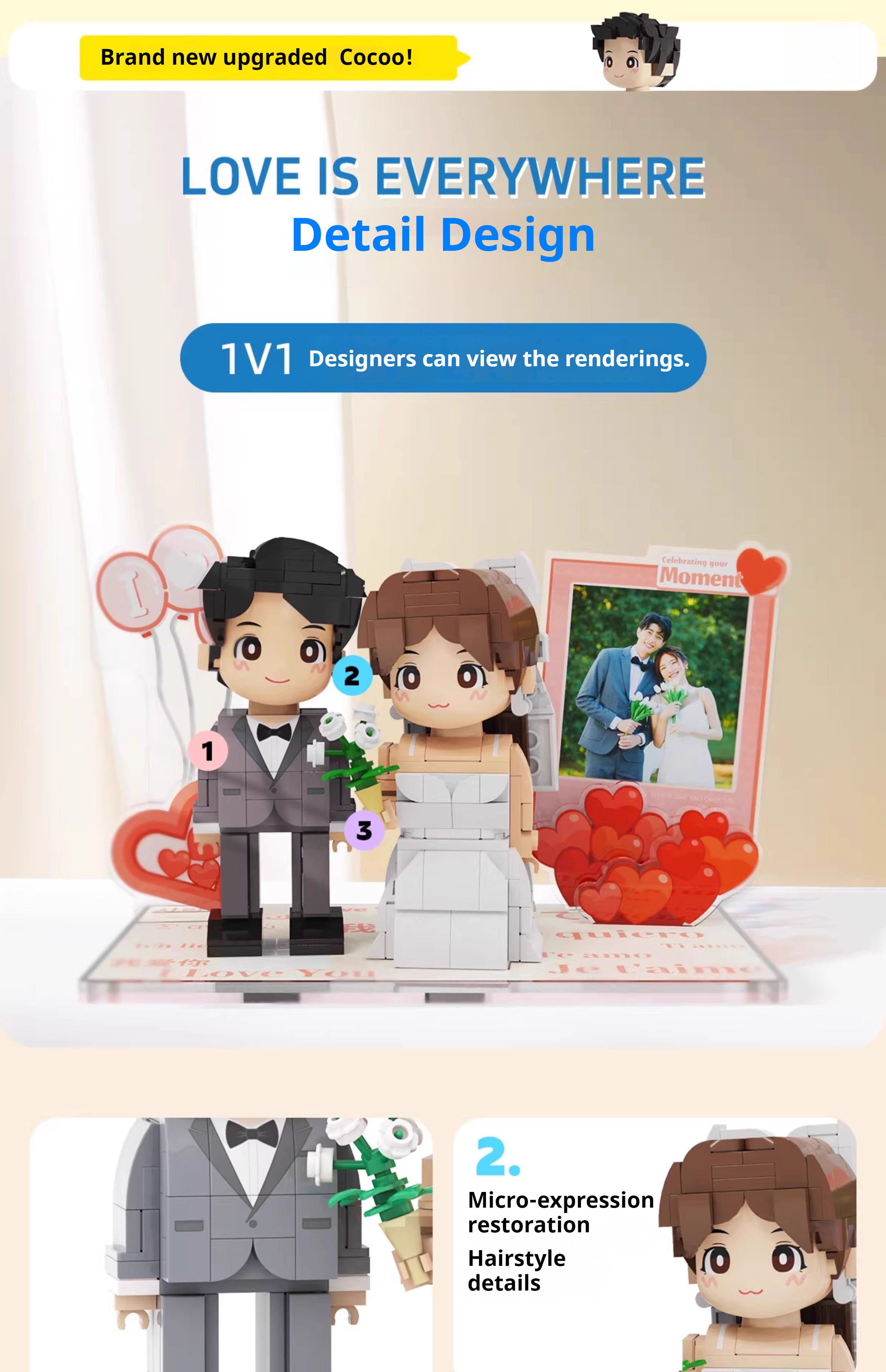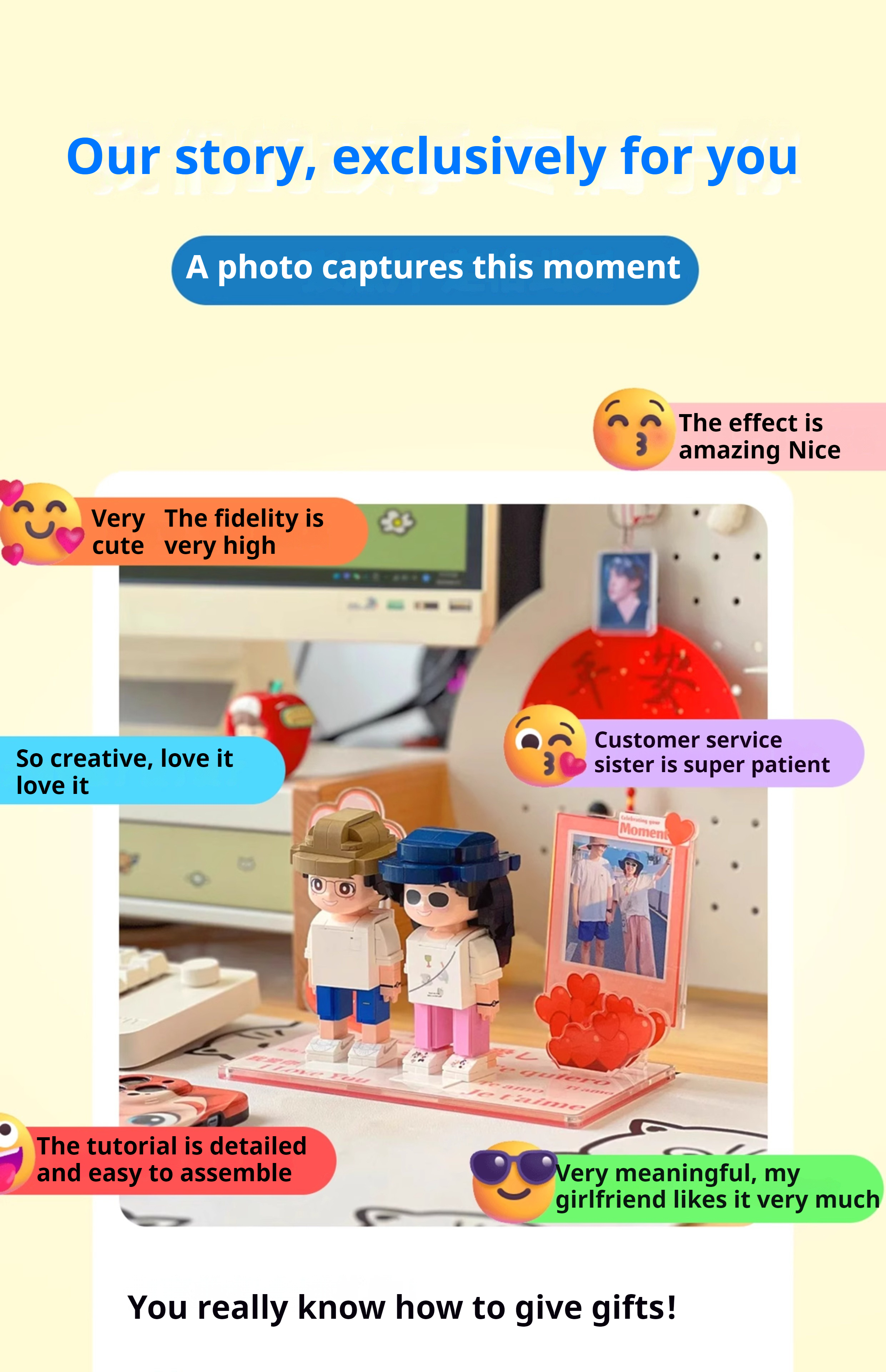 WOWLIDAY DIY Handmade Gift Photo Customization Building Block Portrait Handmade Couple Ornament Birthday Gift