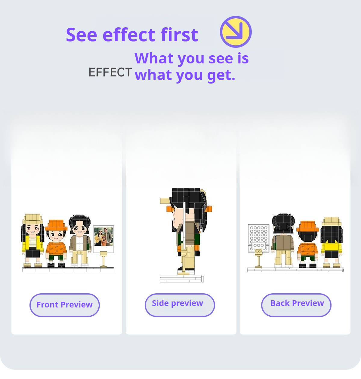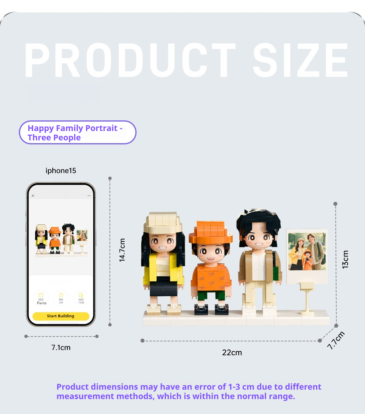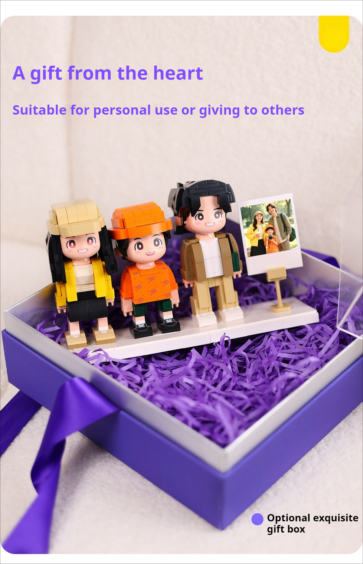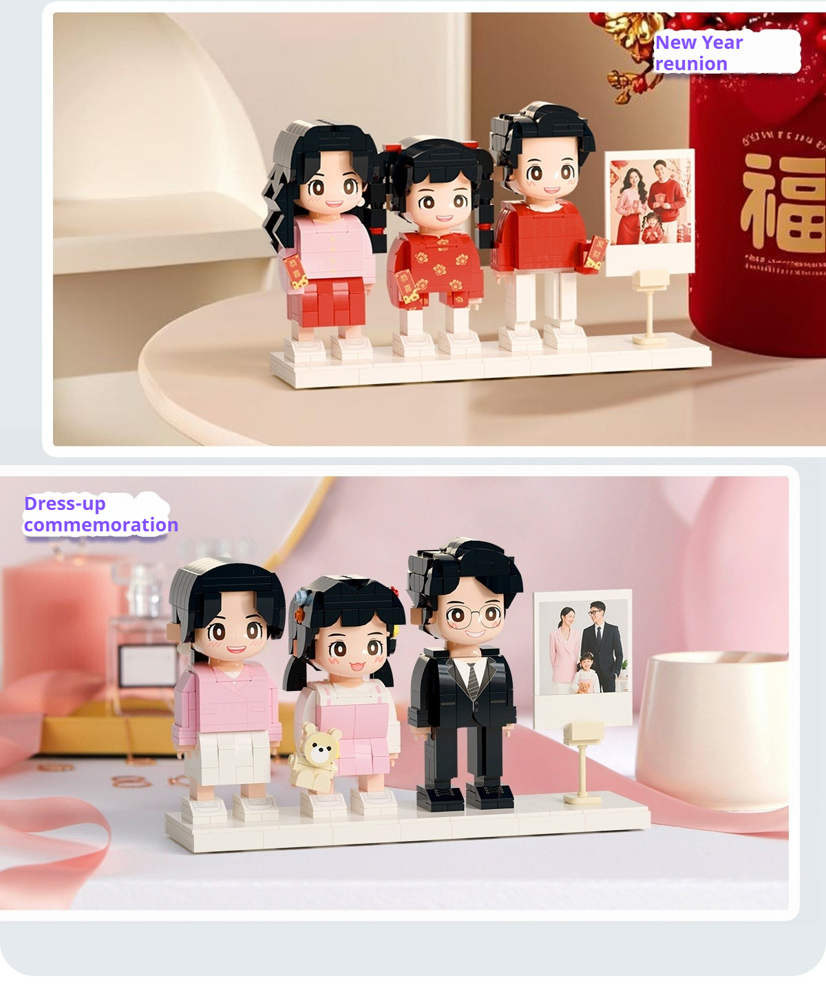 WOWLIDAY Family Portrait Commemorative Ornament Photo Custom Building Blocks for Three People Creative Gift