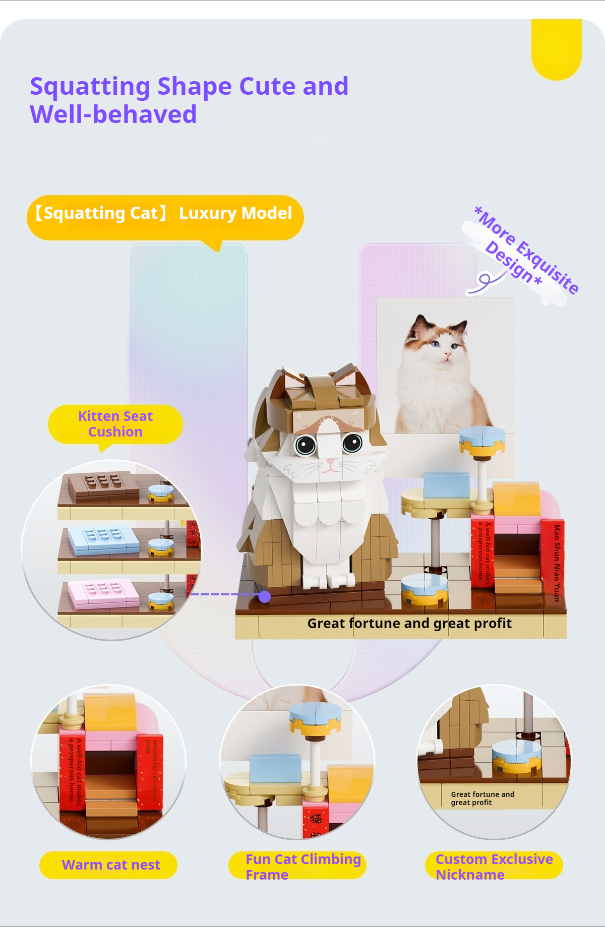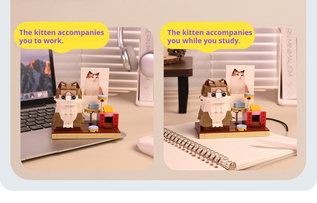 WOWLIDAY Photo Customization Pet Cat Creative Building Block Assembly Toy Couple Figurine Figurine